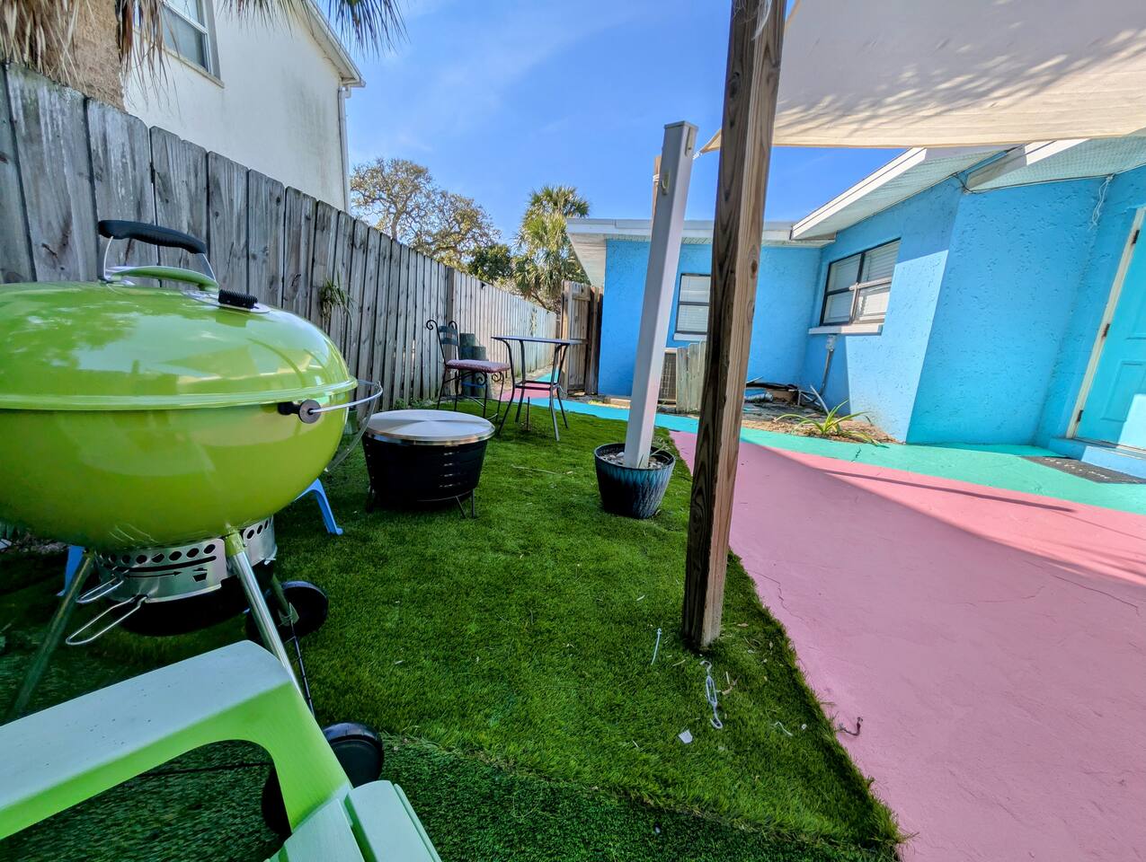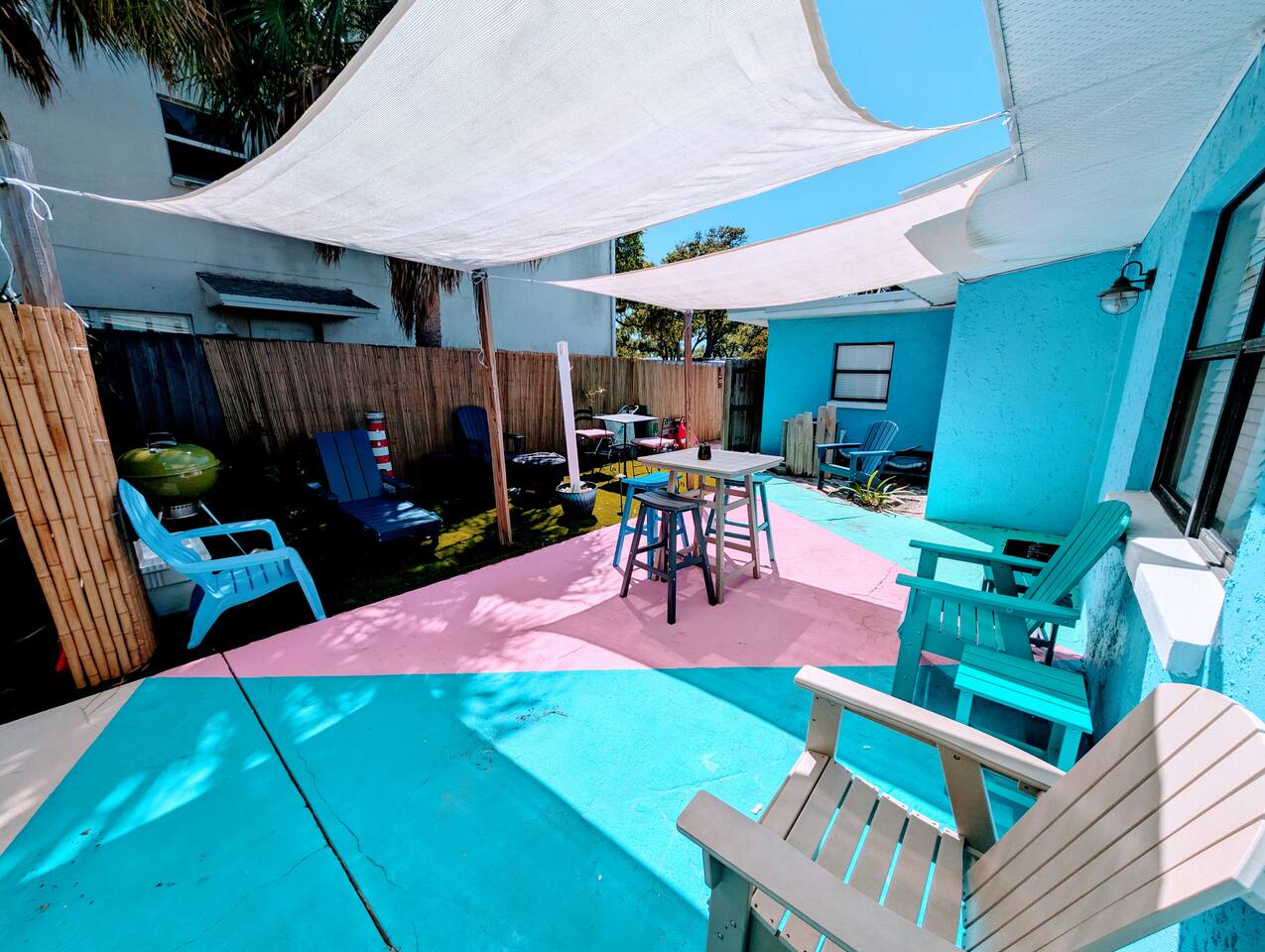 Unit 2 is part of our boutique quadplex in the heart of downtown Cocoa Beach, giving you the perfect mix of relaxation and convenience. From here, you’re just a one-minute walk to the sand and steps from restaurants, cafés, and shops. What sets this property apart is how much space is designed for guests to enjoy. Across four units, we host only 11 guests total, yet we’ve created 25+ chairs and 11 distinct seating areas. Even when the property is full, you’ll always find a quiet corner to relax. As a guest of Unit 2, you’ll have direct access to the colorful shared patio, one of the highlights of the property. With vibrant sunshades, grills, and plenty of seating, it’s the perfect spot for morning coffee, evening barbecues, or simply soaking up the laid-back Cocoa Beach vibe. We’re also pet-friendly, so you can bring your furry friend along (leash required). Clear guidelines help ensure the space stays comfortable and welcoming for everyone. Run and maintained by lifelong Floridians, the quadplex is cared for with pride. We live nearby and check in regularly, so you’ll always find it clean, well-kept, and ready for your stay. With its prime location, abundant seating, and unique outdoor spaces, this property offers the resort feel of Cocoa Beach—without the resort crowds.