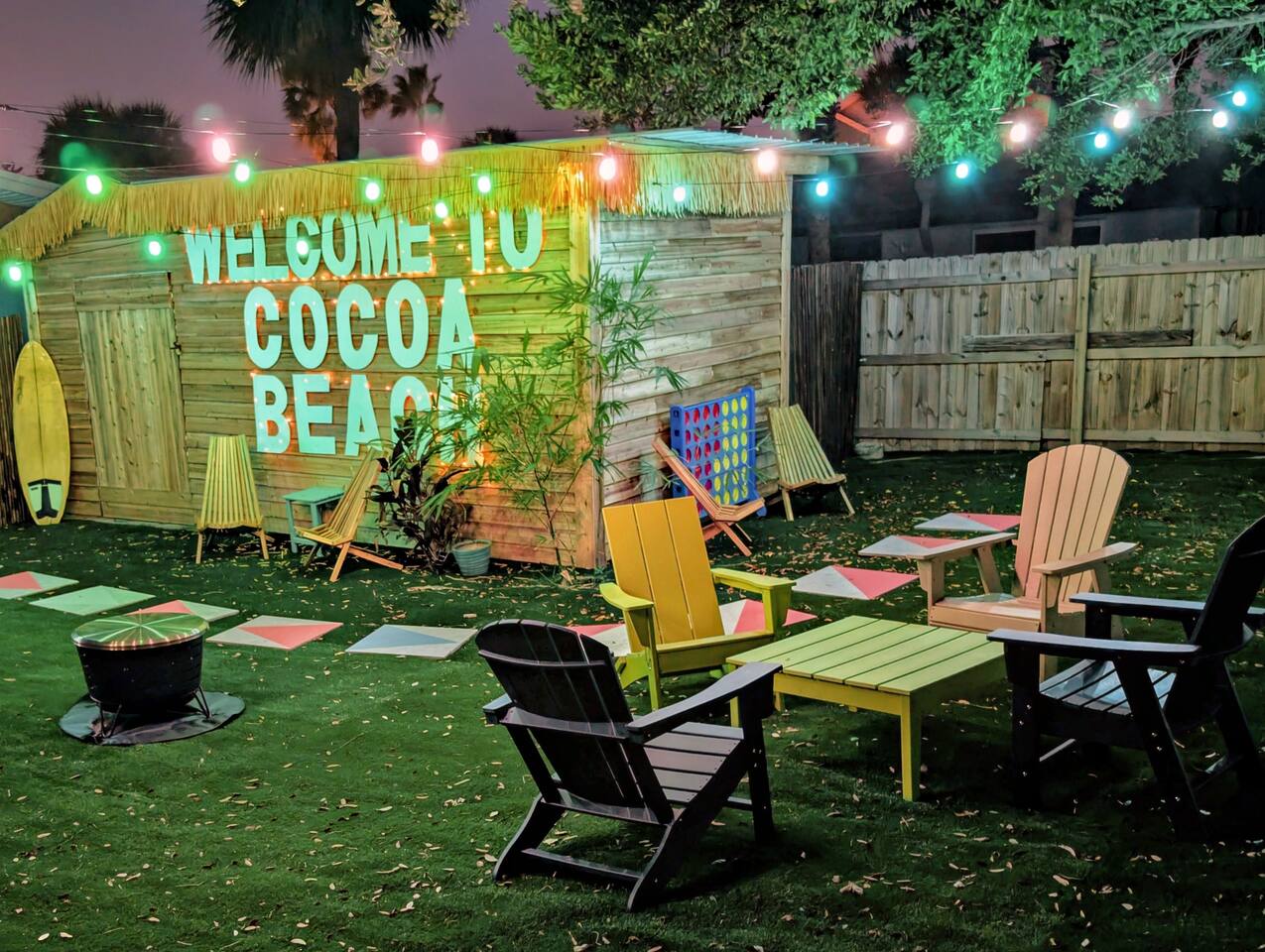 Perfect for couples or solo travelers, this bright studio is just a 1-minute walk to Cocoa Beach and steps from shops, dining, and nightlife. Enjoy a comfy and spacious king bed, kitchenette, and essentials for a stress-free stay. The property hosts only 11 guests across 4 units yet offers 25+ chairs and 11 seating areas, so there’s always space to relax. Explore by day, then return to a colorful backyard designed for comfort and convenience.