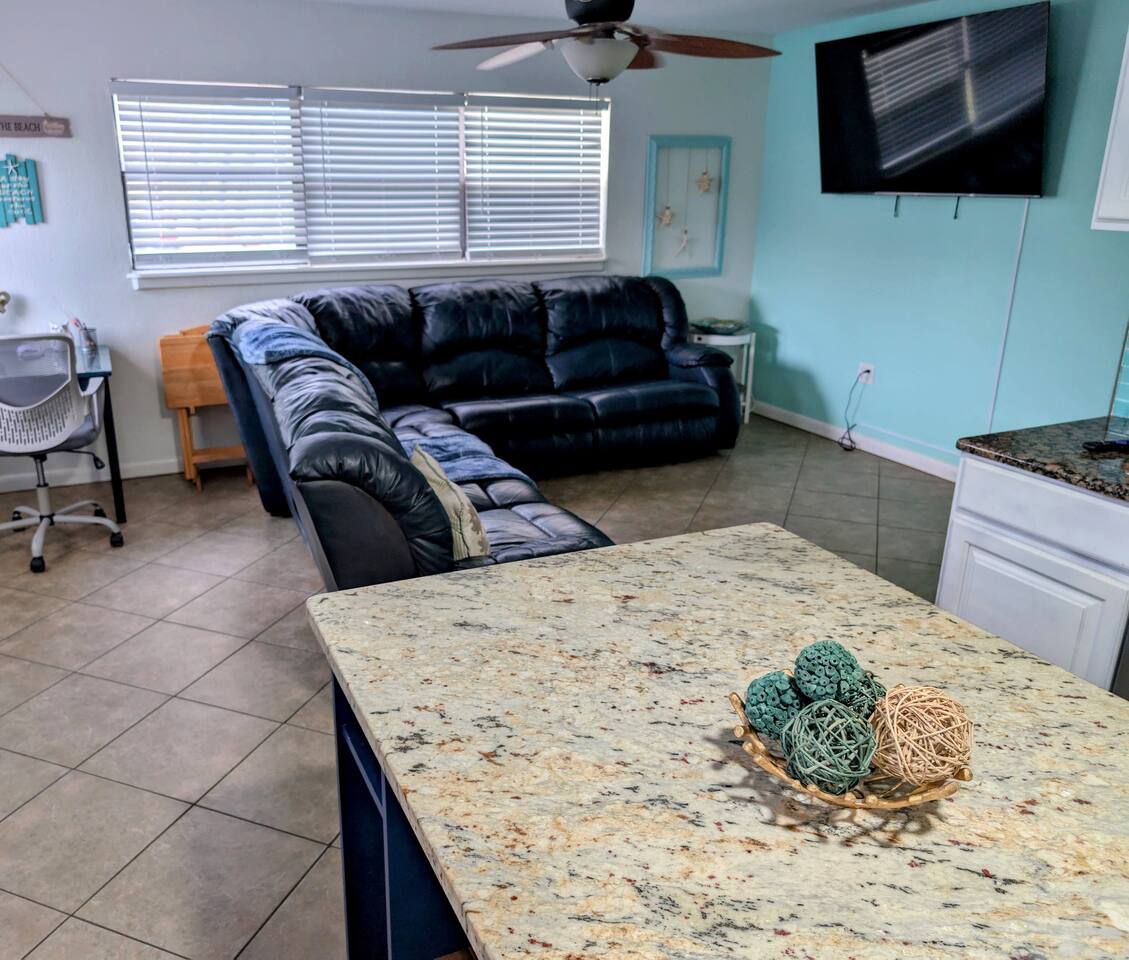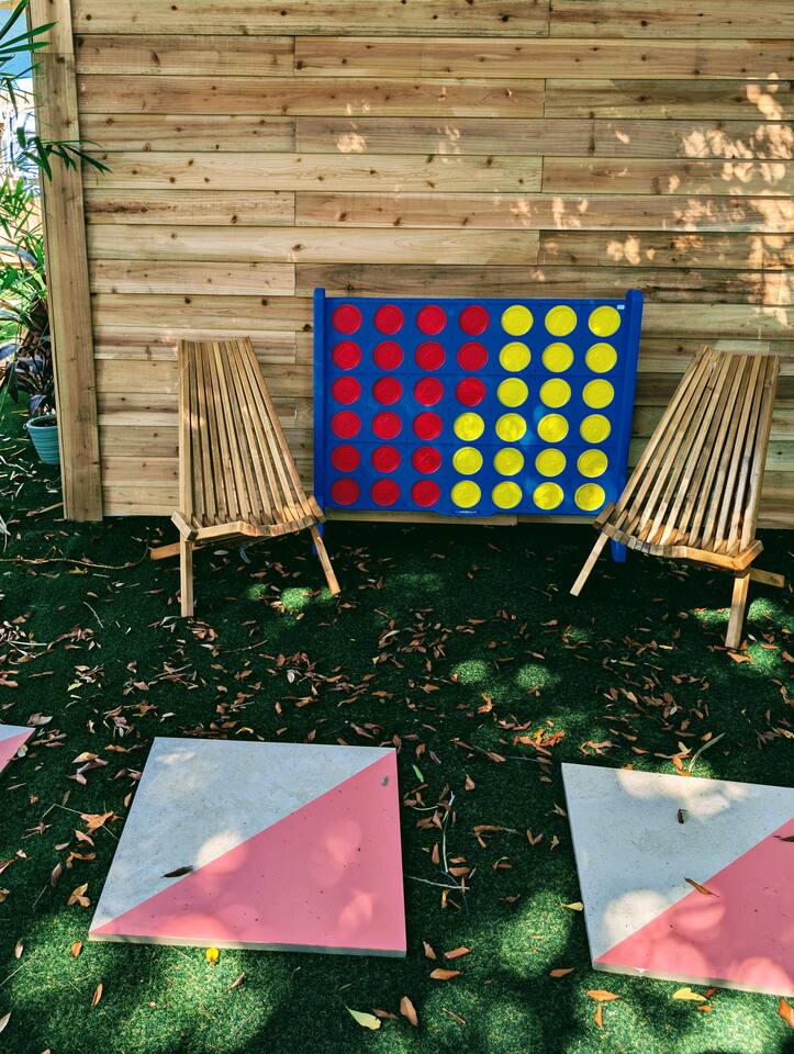 As a guest of the Main House, you’ll enjoy a private 2-bedroom home with a full kitchen, cozy living area, and your own in-unit arcade. This is your dedicated space to relax, cook meals, and spend time together. Outside, you’ll also have access to the property’s resort-style backyard. While the Main House does not open directly onto the shared patio, you’re welcome to enjoy the vibrant outdoor areas that include 25+ chairs, 11 unique seating zones, grills, and colorful patio spaces. To make things even easier, a seating area is reserved specifically for your group, so you’ll always have your own spot when you want privacy. We kindly ask that all guests respect the shared nature of the backyard by keeping noise levels reasonable and being mindful of neighbors, ensuring everyone has an enjoyable stay. The property is just steps from the beach and a short walk to Cocoa Beach’s restaurants and shops. We live nearby and visit regularly to maintain the property, so you’ll always find it well-kept. While we respect your privacy, we’re available if you need anything during your stay. Parking: One free parking spot is included with this unit.