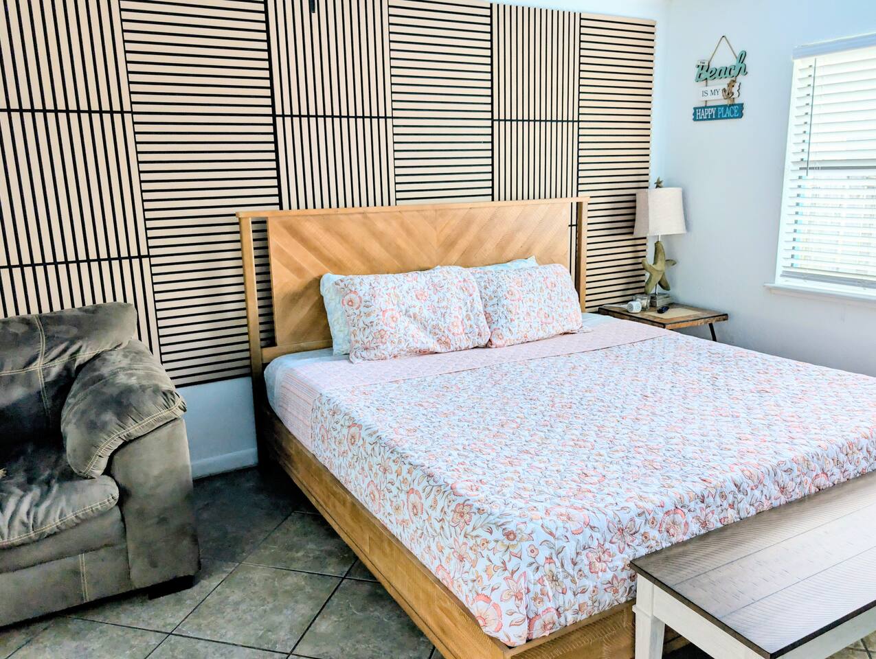 Relax in this charming studio just steps from Cocoa Beach and downtown dining, shops, and nightlife. Perfect for couples or solo travelers, Unit 3 offers comfort and convenience with a king bed, kitchenette, and private bath. Enjoy the colorful shared patio with sunshades, grills, and plenty of seating—part of a boutique property hosting only 11 guests across 4 units. Pet-friendly and family-run, it’s your peaceful retreat with a resort feel.